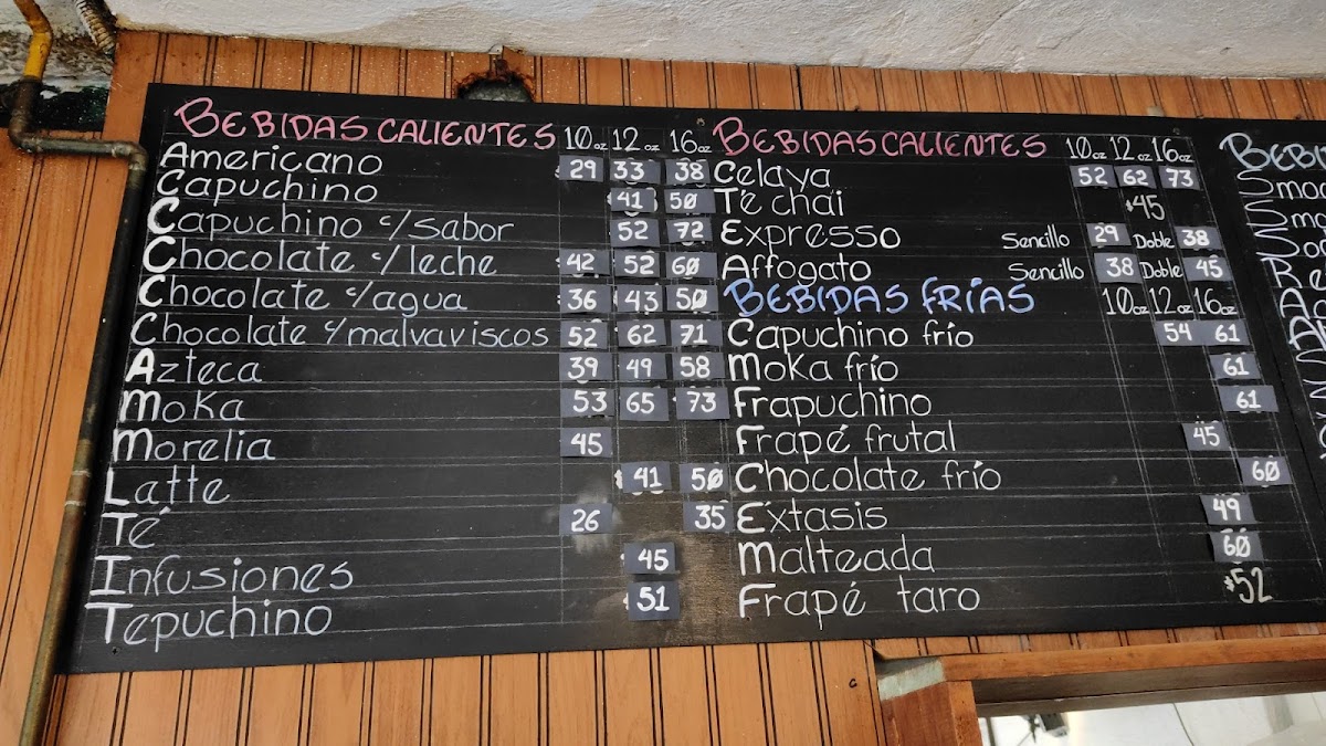 The menu features an impressive array of offerings, including Cuernitos filled with juicy ham, gouda cheese, and fresh lettuce or tomatoes, priced between MX$74.00 and MX$79.00. For those seeking something sweet, the Azteca Chocolate and Morelia Chocolate beverages provide rich flavors that are simply irresistible.